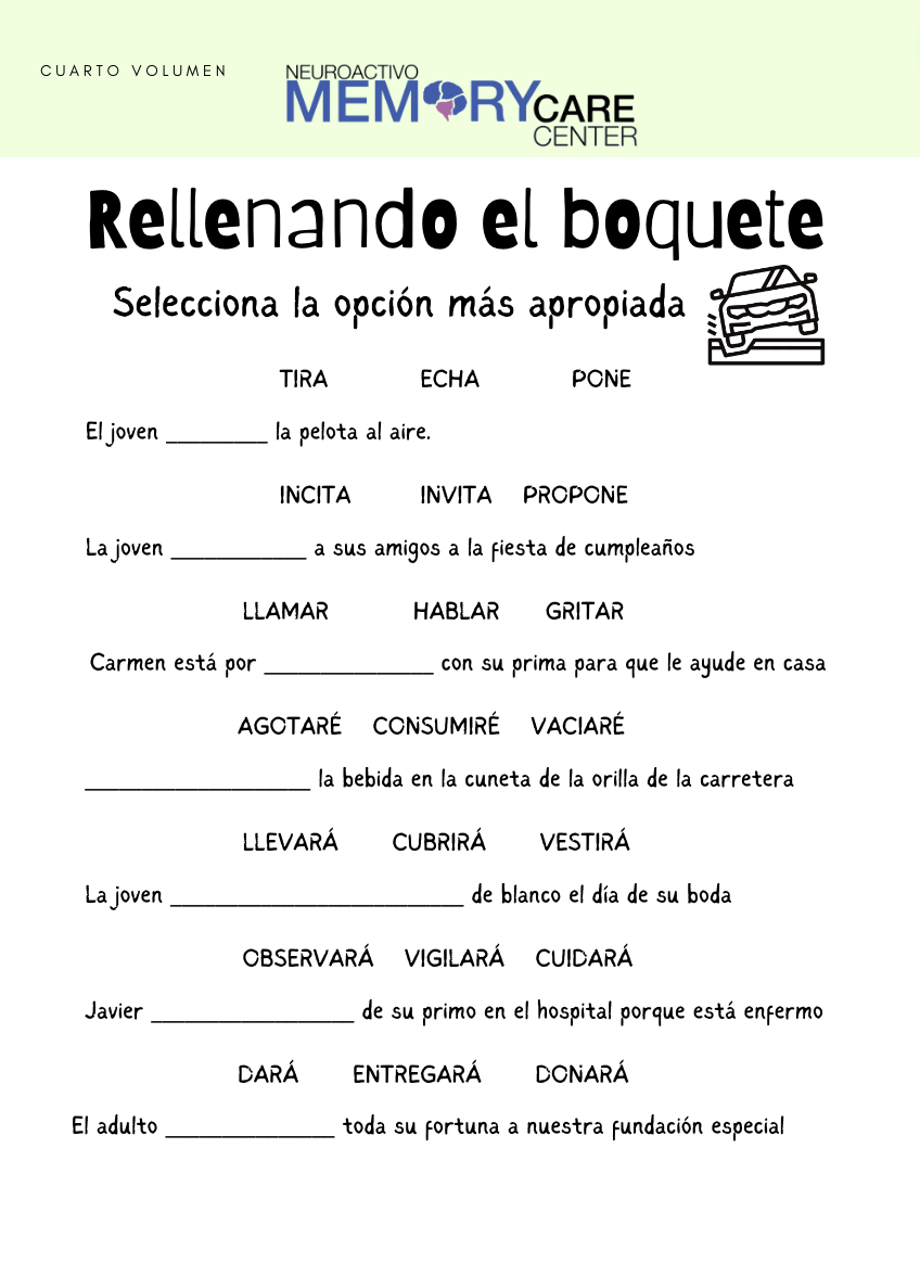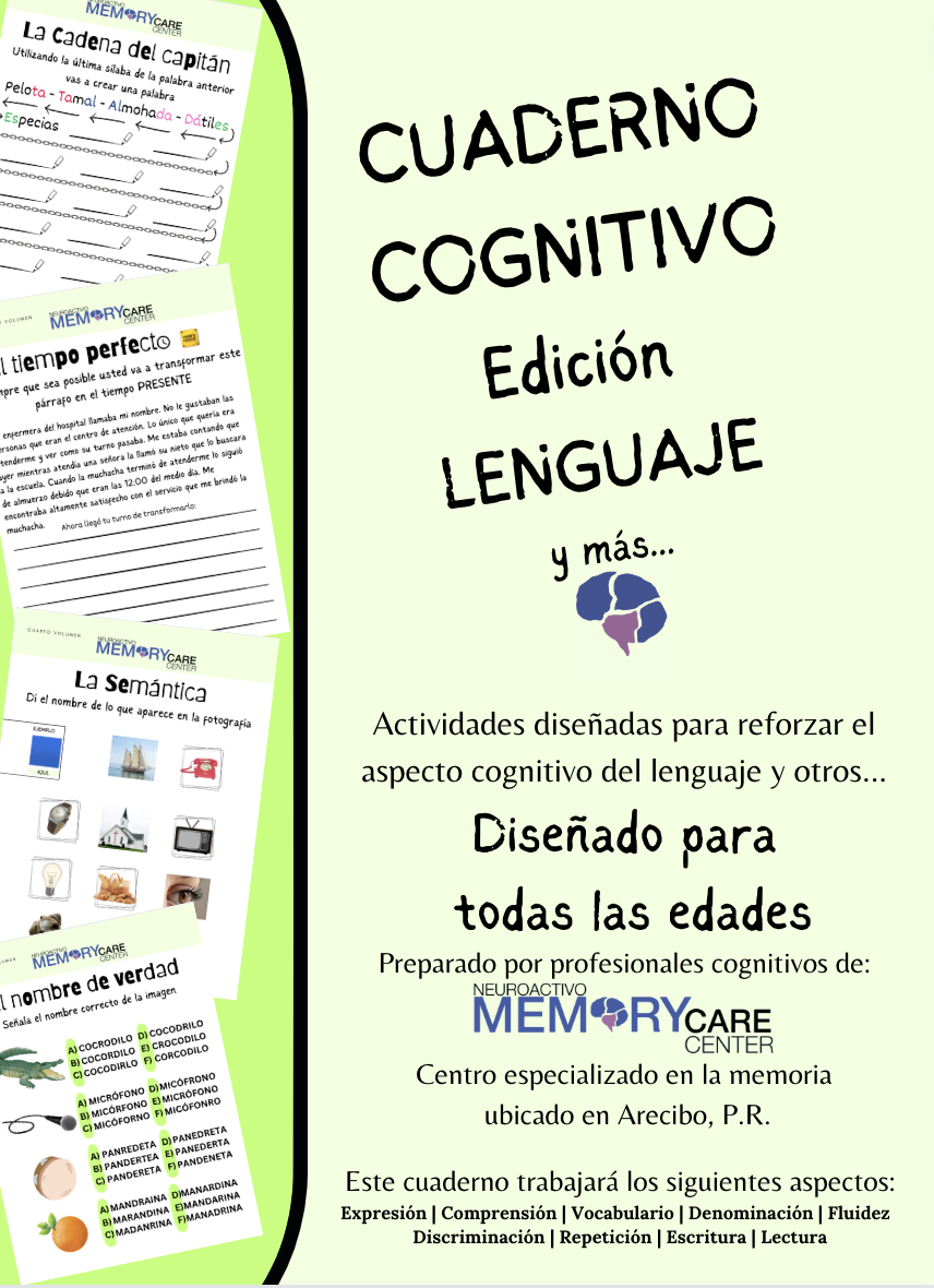 Cuaderno especializado en reforzar los aspectos cognitivos principalmente en el lenguaje. Dentro de esto se encuentra lo siguiente: Expresión, Comprensión, Vocabulario, Denominación, Fluidez, Discriminación, Repetición y Escritura.