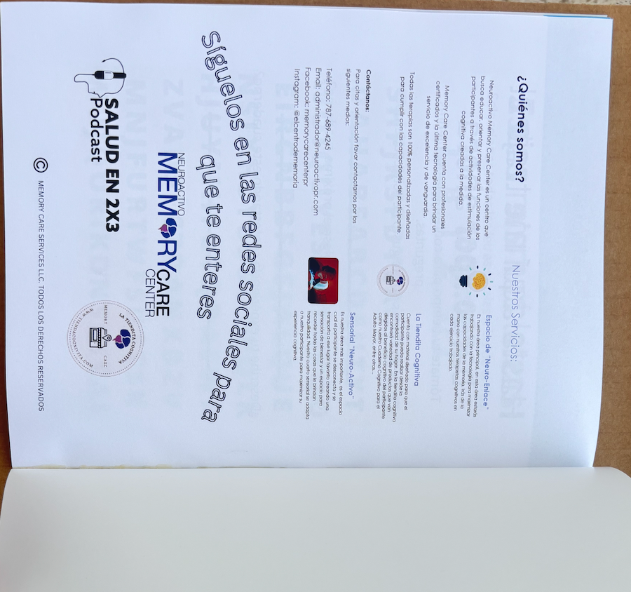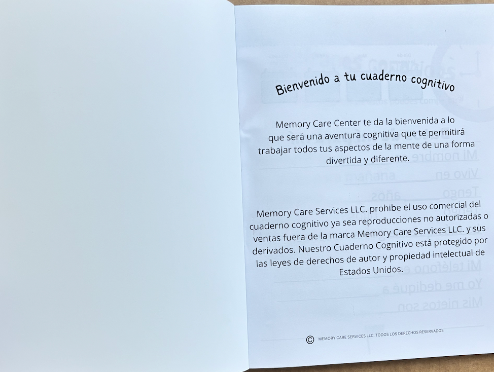 Es un Cuaderno Diseñado por la Gerontóloga de Memory Care Center. Esta versión de imprenta está curada y refinada para distribución comercial. Solo está en ventas en packs de 6.